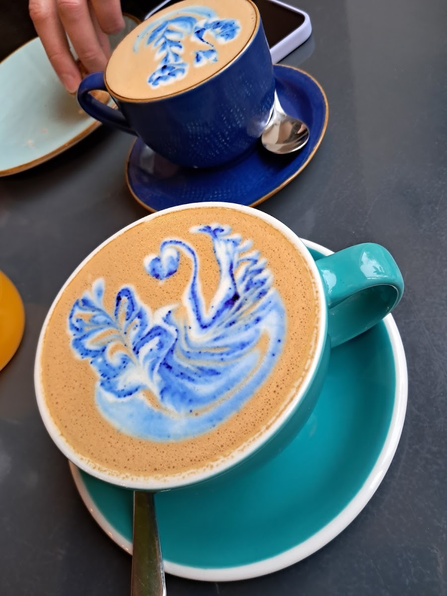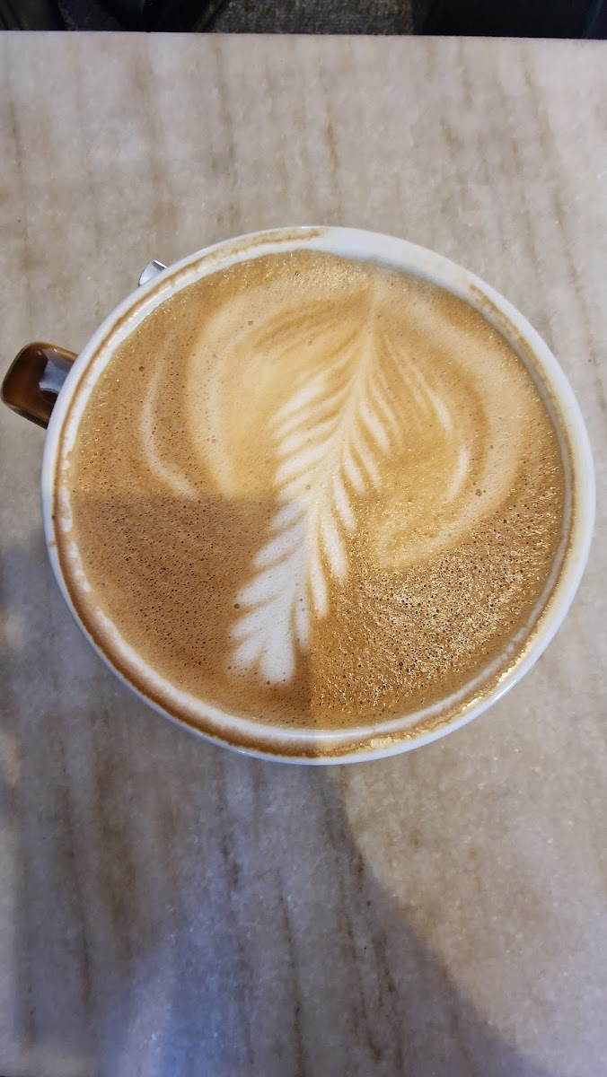 Best coffee and detailed artwork in a cup. We loved this ground floor cafe, coffee house and much more. Totally vegan menu's, selection of reading material and comfortable seating. It's a big hit with young mums, plenty of space for pushchairs. Tram stop outside.