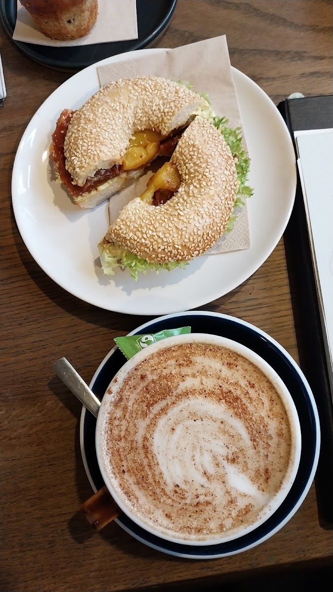 We stumbled upo this cafe. The inside is very aesthetic and they have many books and board games. We ordered matcha latte, chai latte and a tea, all being very good. We also had the carrot cake which was great! Since we arrived close to closing time and there was still a lot of cake over, they gave us 2 free pieces. I‘m very happy to see that food is not wasted!